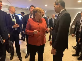 El encuentro con Merkel es el segundo que el líder opositor mantiene con un mandatario europeo, tras la reunión que sostuvo el lunes en Londres con el primer ministro británico, Boris Johnson.