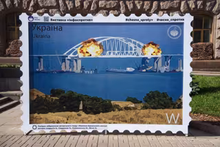Una ilustración muestra en Kiev la destrucción parcial del puente de Kerch, en Crimea - DANYLO ANTONIUK / ZUMA PRESS / CONTACTOPHOTO