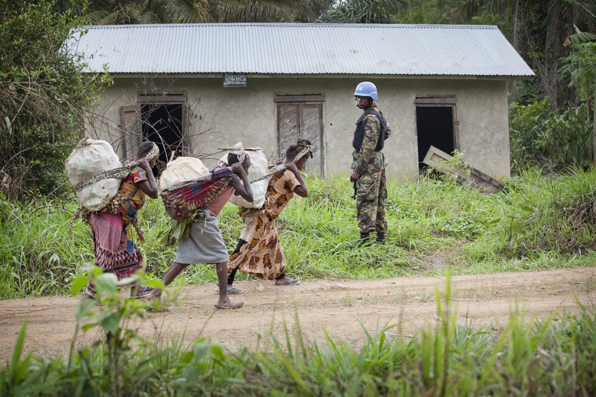 Archivo - Un 'casco azul' de la MONUSCO junto a unas mujeres en Beni, en el este de RDC - MONUSCO/SYLVAIN LIECHTI - Archivo