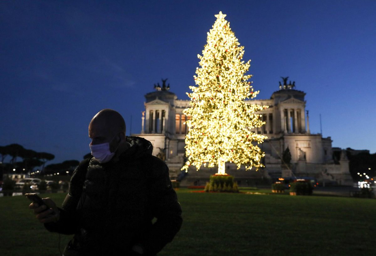 Un hombre con mascarilla en la plaza de Venecia de Roma - CHENG TINGTING / XINHUA NEWS / CONTACTOPHOTO