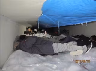 En el interior del vehículo se hacinaban 22 guatemaltecos, 17 mexicanos, 13 salvadoreños y ocho hondureños que no habrían podido salir en caso de haberlo necesitado, ya que las puertas estaban aseguradas, según un comunicado de la Oficina de Aduanas.