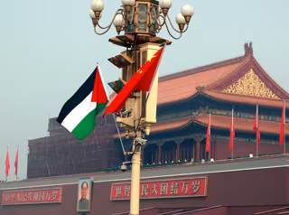 Archivo - Una bandera palestina (izquierda) junto a una china (derecha) en la Plaza de Tiannanmén, en Pekín - Europa Press/Contacto/Stephen Shaver - Archivo