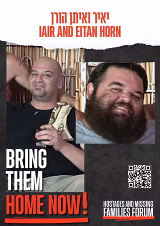 Los dos hermanos aparecen acompañados de otros tres rehenes, todos sentados en el suelo, y parece ocurrir justo 24 horas antes de la puesta en libertad de Iair Horn. "Estoy muy contento", dice su hermano Eitan, "de que mi hermano vaya a ser liberado mañana, pero no veo lógico que las familias estén separadas".