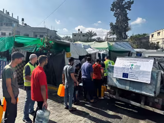 Acción contra el Hambre distribuye agua potable en una escuela primaria situada en el centro de la ciudad de Gaza - ACCIÓN CONTRA EL HAMBRE