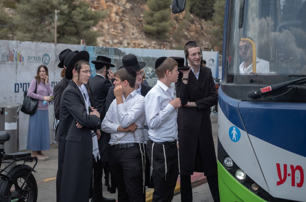 08 September 2025, Israel, Jerusalem: Israelis stand at the bus stop where a shooting attack took place in Jerusalem. - Ilia Yefimovich/dpa
