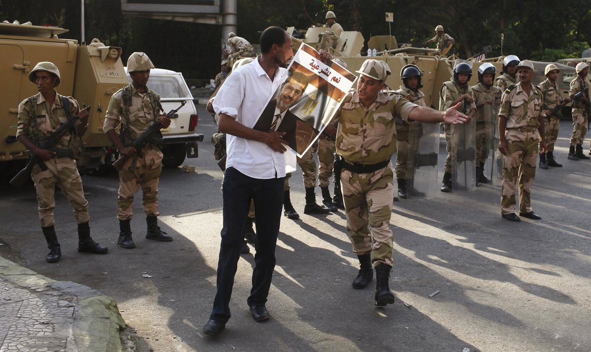 El llamamiento ha sido emitido en una rueda de prensa en una mezquita en los suburbios de El Cairo, donde partidarios de Mursi han estado llevando a cabo una semana desde la semana pasada. Soldados con vehículos blindados han rodeado la zona desde el miércoles, cuando Mursi fue derrocado, pero no han intervenido para dispersar a los manifestantes.