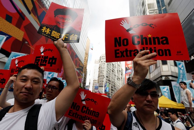 Cientos de miles de personas han participado este domingo en una de las mayores protestas de la historia de Hong Kong contra la propuesta de ley de extradición por la que sospechosos de cometer delitos en el territorio serían devueltos a la China continental, donde sus garantías judiciales se verían coartadas.