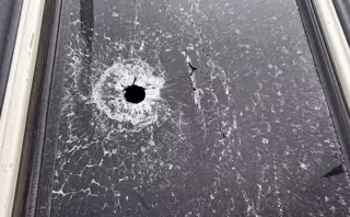 Un agujero de bala en un autobús en Almaty durante las protestas - - / SPUTNIK / CONTACTOPHOTO