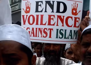 Hombres protestan en Bomabycontra los ataques a la comunidad musulmana. - REUTERS / FRANCIS MASCARENHAS