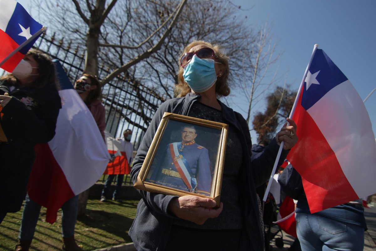 Una mujer sostiene un retrato de Augusto Pinochet - Francisco Castillo/colprensa/dpa