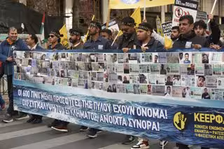 Archivo - Los supervivientes del naufragio de Pylos (Grecia) de junio de 2023, donde murieron ahogados más de 600 migrantes y refugiados, se manifiestan en Atenas - Europa Press/Contacto/Nikolas Georgiou - Archivo
