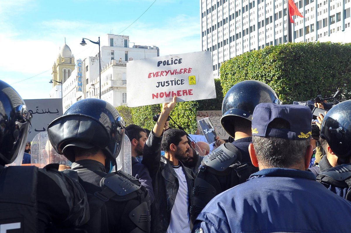 Desde el 14 de enero, la Policía de todo el país ha detenido a cientos de manifestantes, incluidos muchos menores. Un portavoz del Ministerio del Interior, Jaled Hyouni, confirmó el 18 de enero que las autoridades arrestaron al menos a 630 manifestantes en todo el país ese día. Algunos de los detenidos, reconoció, tenían entre 13 y 25 años.