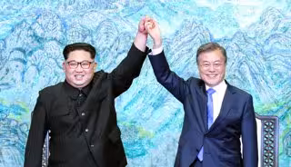 El líder norcoreanao, Kim Jong Un, y el presidente de Corea del Sur, Moon Jae-in. - 2018 KOREA SUMMIT PRESS POOL / POOL - Archivo