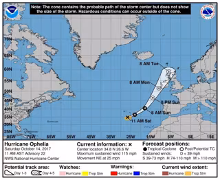 El huracán 'Ophelia', recientemente formado en aguas del Atlántico, ha ascendido a categoría 3 y genera vientos sostenidos de 185 kilómetros por hora. La tormenta se encuentra al sur de las islas Azores portuguesas y en los próximos días seguirá su camino hacia el noreste, hacia las islas Británicas.