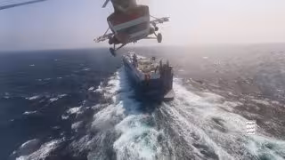 Archivo - Un helicóptero de los hutíes sobrevuela un buque de carga en el mar Rojo frente a la costa de Hodeida, Yemen - -/dpa - Archivo