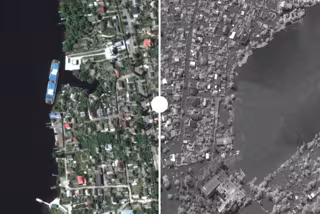 Nuevas imágenes por satélite publicadas por la empresa estadounidense Maxar muestran los efectos de la destrucción de la presa en Nueva Kajovka (Ucrania) el pasado 6 de junio, que ha ocasionado inundaciones a lo largo del río Dniéper.