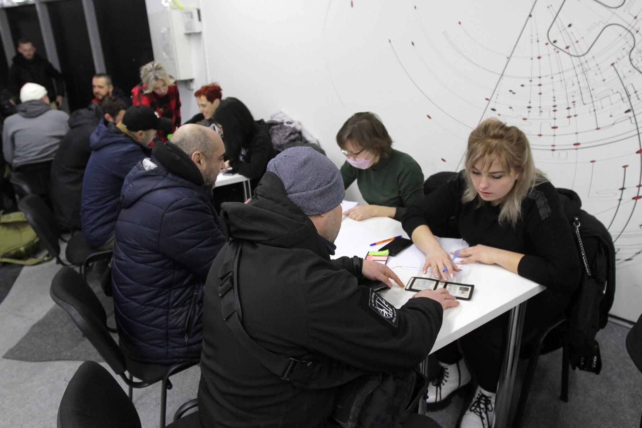 En Dnipro, un centro de reclutamiento de voluntarios: