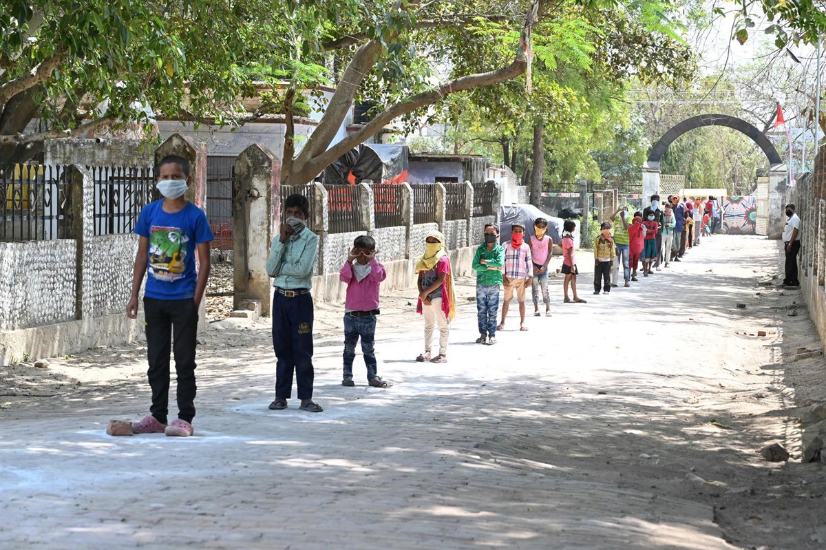 Niños con mascarilla por el coronavirus hacen cola en India para conseguir el menú escolar - Prabhat Kumar Verma/ZUMA Wire/dp / DPA