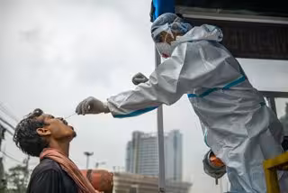 Un trabajador sanitario realiza un test a un ciudadano indio. - Pradeep Gaur/SOPA Images via ZUM / DPA - Archivo