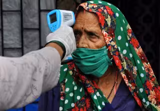 Una trabajadora del personal sanitario toma la temperatura de una mujer en India en el contexto de la crisis sanitaria provocada por la COVID-19. - Ashish Vaishnav/SOPA Images via / DPA - Archivo