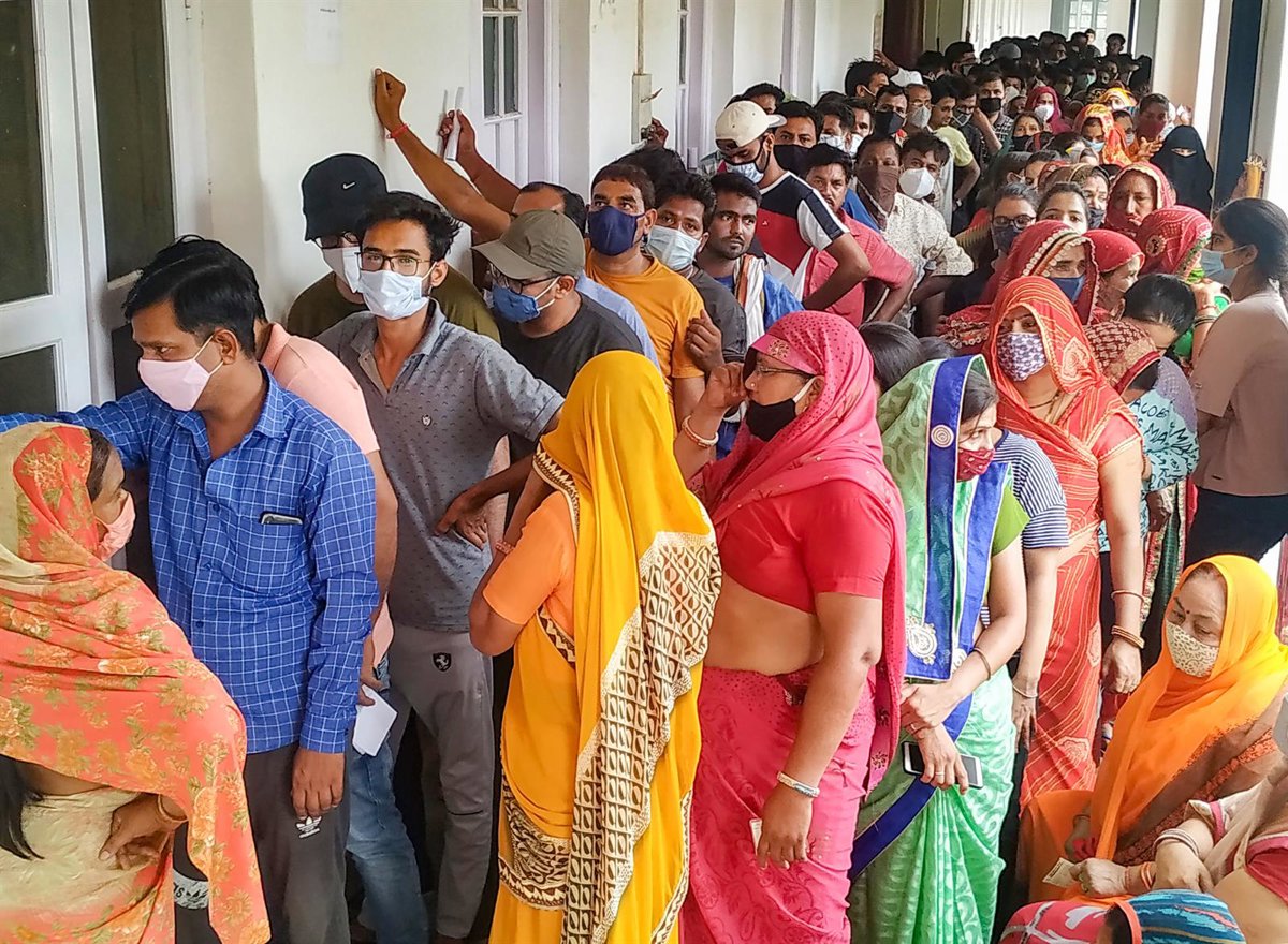 Un grupo de personas espera para ponerse la vacuna contra el coronavirus en India - Rakesh Gurjar/PTI/dpa