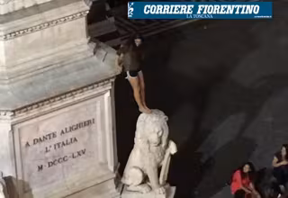 Una turista española ha provocado la indignación de algunos vecinos del centro de Florencia tras ser descubierta subida descalza a uno de los leones de una escultura de Dante Alighieri en la plaza de la Basílica de Santa Cruz.