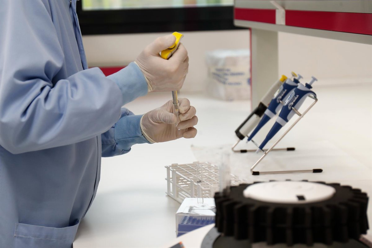 Un hombre trabaja en el edificio del Control de Calidad del Laboratorio del Centro Militar de Farmacia de la Defensa en la base logística de San Pedro. - Óscar J.Barroso - Europa Press