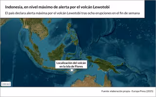 Las autoridades de Indonesia han situado este lunes en el nivel máximo la alerta por el aumento de la actividad en el volcán Lewotobi, situado en la parte sureste de la isla de Flores y que ha registrado ocho erupciones a lo largo del fin de semana.
