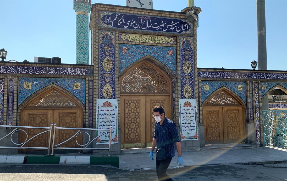 Un hombre con mascarilla camina frente a una mezquita en Teherán - Farshid-Motahari Bina/dpa - Archivo
