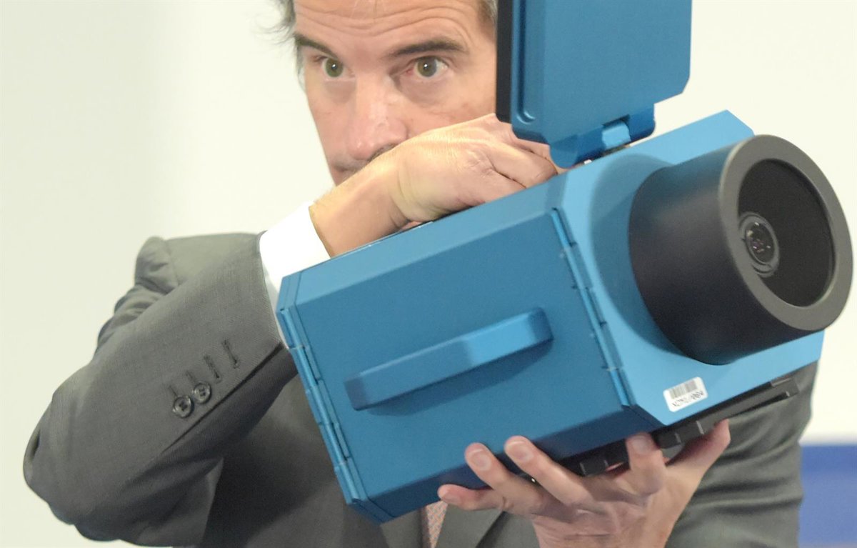 El director general de la Agencia Internacional de la Energía Atómica (AIEA), Rafael Grossi, con una cámara como las instaladas en la central nuclear de Karaj, en Irán - GUO CHEN / XINHUA NEWS / CONTACTOPHOTO