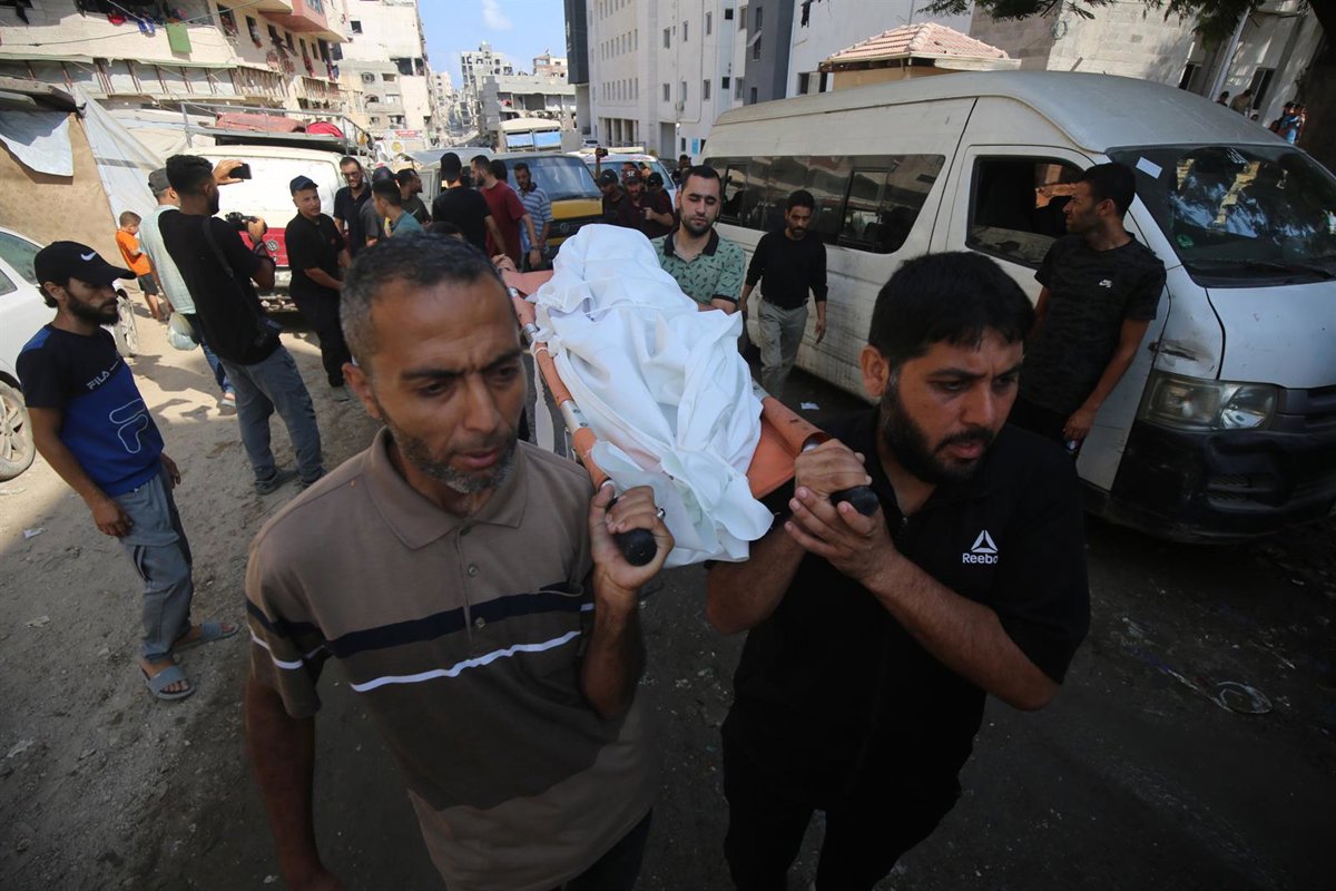 Un grupo de palestinos porta el cadáver de unos de sus familiares muerto por los ataques de Israel. - Europa Press/Contacto/Omar Ashtawy