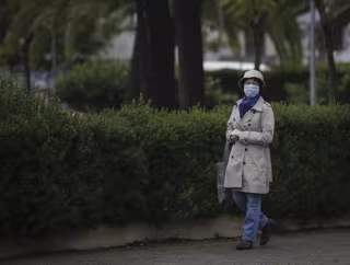 Una mujer protegida con mascarilla camina por la calle. - María José López - Europa Press
