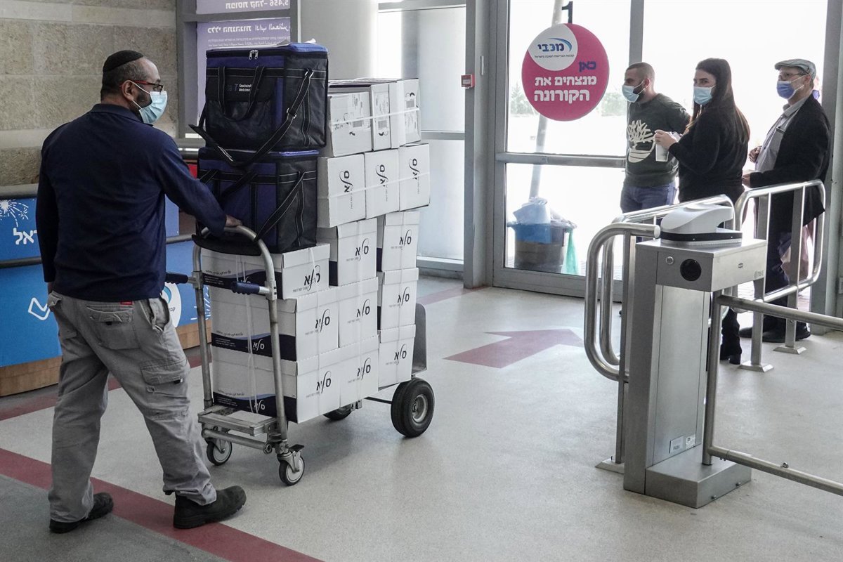 Un operario lleva en un carro varias cajas con vacunas de Pfizer. - Nir Alon/ZUMA Wire/dpa