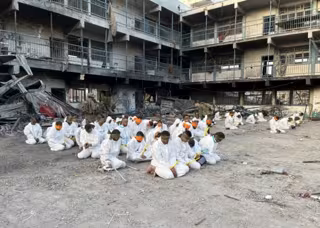 Palestinos detenidos durante el asalto israelí al Hospital Kamal Aduan, en el norte de la Franja de Gaza - FUERZAS ARMADAS DE ISRAEL