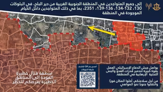 "Las Fuerzas de Defensa de Israel (FDI) continúan operando con gran fuerza para destruir las capacidades del enemigo y la infraestructura terrorista en la zona, a medida que expanden sus actividades a una zona donde no han operado antes", ha indicado el portavoz en árabe del Ejército, el coronel Avichai Adraee.