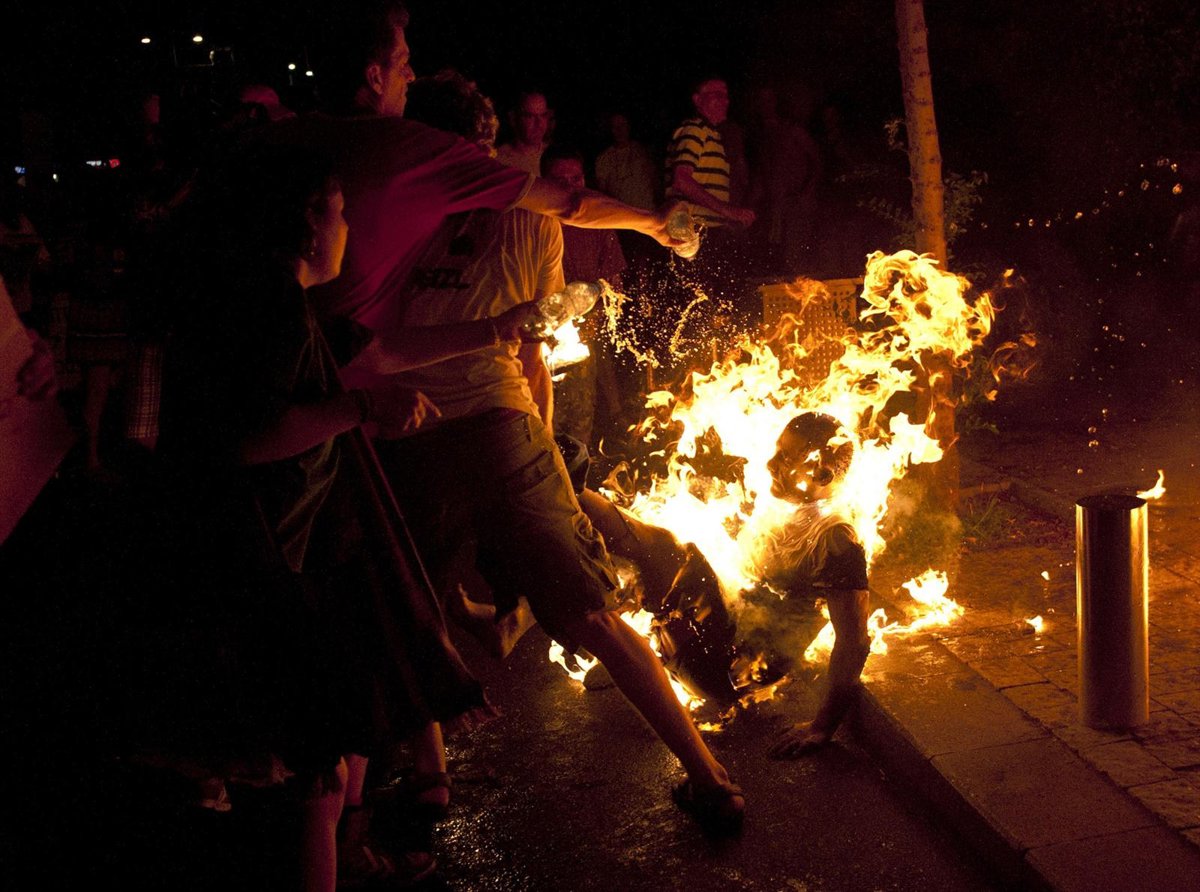 Un hombre israelí de unos 50 años de edad se ha prendido fuego a lo bonzo durante una manifestación de 'indignados' celebrada en Tel Aviv para recordar el primer aniversario de las movilizaciones a favor de una mayor justicia social y para protestar por el alto coste de la vida.