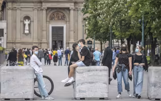 Un grupo de jóvenes camina por las calles de Bergamo. - AGAZZI/FOTOGRAMMA / ZUMA PRESS / CONTACTOPHOTO