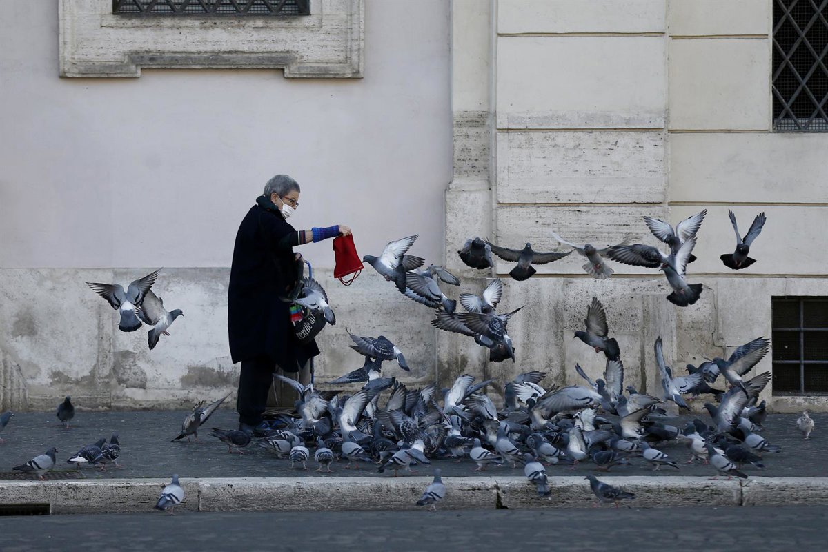 Una mujer con mascarilla da de comer a las palomas en Roma - Cecilia Fabiano/LaPresse via ZUM / DPA
