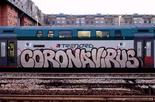 Un tren con un grafitti de coronavirus en Milán - Piero Oliosi