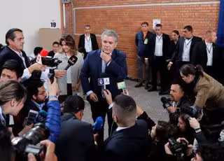 El candidato del Partido Centro Democrático, Iván Duque, ha ejercido este domingo su derecho al voto y se ha reivindicado como el representante de "una nueva generación" de colombianos. El candidato favorito de la derecha ha destacado sus ejes de campaña: legalidad, emprendimiento y equidad.