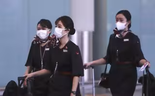 Personal de la tripulación de Japan Airlines a su llegada al Aeropuerto Internacional de Hong Kong. - LIAU CHUNG-REN / ZUMA PRESS / CONTACTOPHOTO
