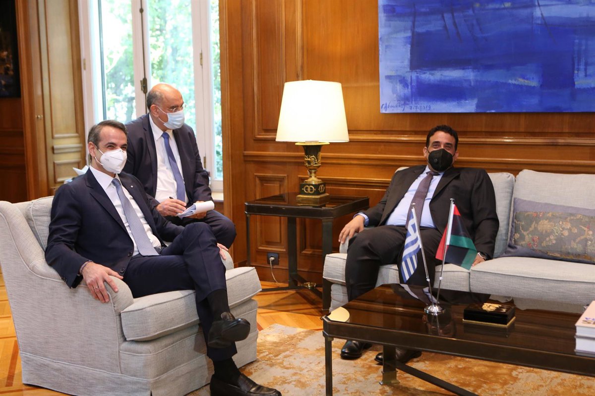 Archivo - El primer ministro de Grecia, Kyriakos Mitsotakis (i), en una reunión con el presidente del Consejo Presidencial de Libia, Mohamed Menfi (d) - Aristidis Vafeiadakis/ZUMA Wire/ DPA - Archivo