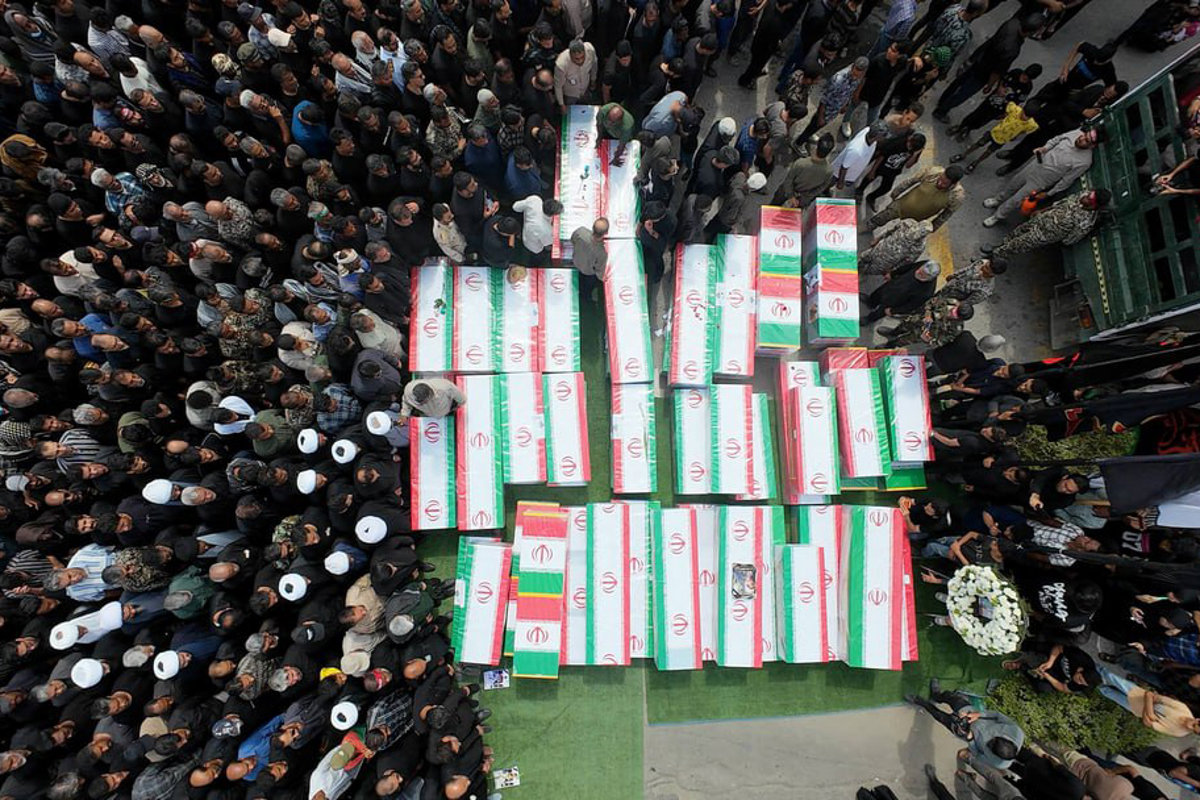 Funeral por las alumnas y el personal de la escuela primaria femenina Shajareh Tayyebé que perdieron la vida en un ataque contra el centro, situado en Minab, en la provincia de Hormozgan, al sur de Irán. - Europa Press/Contacto/Ircs