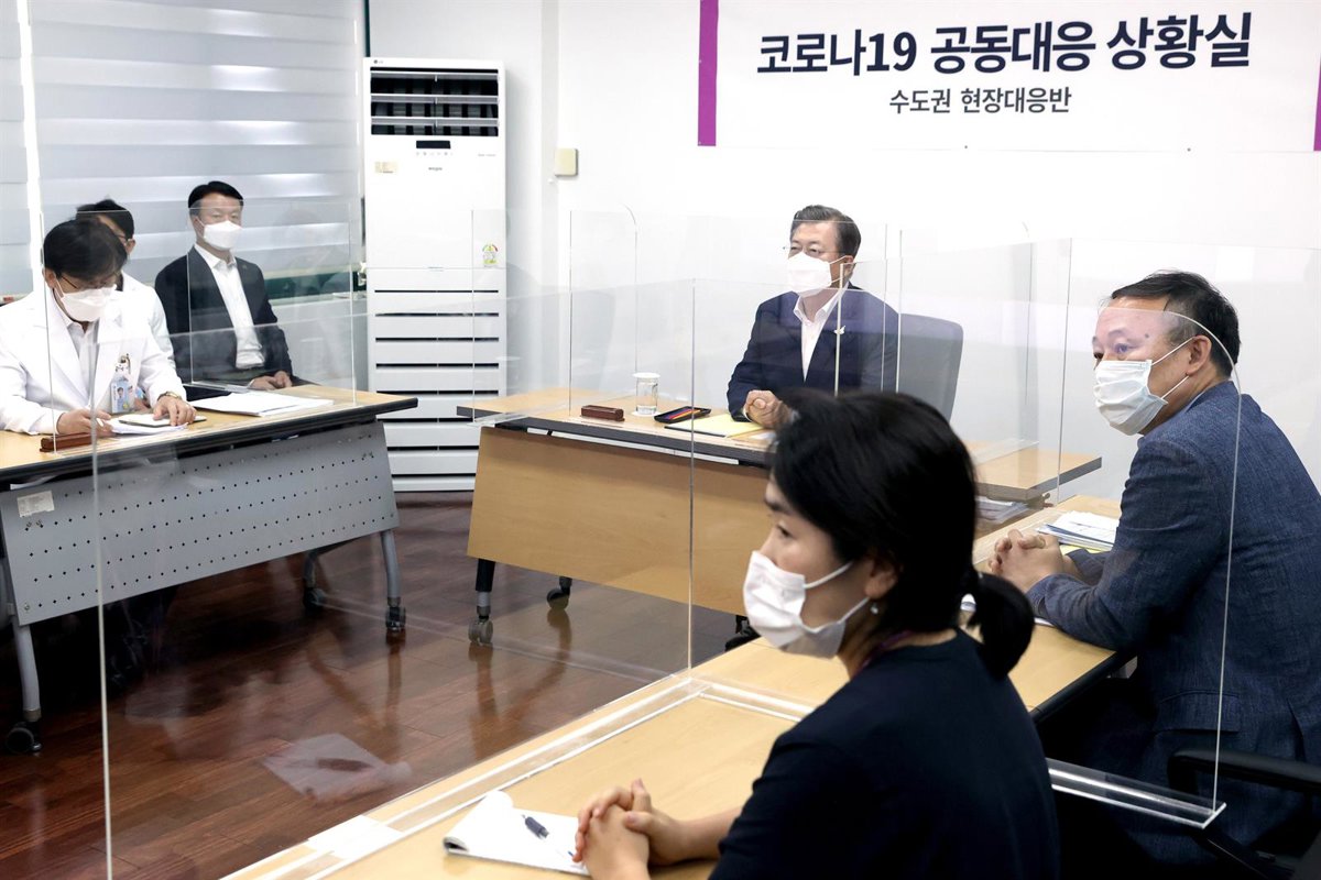 El presidente de Corea del Sur, Moon Jae In, en el centro de la imagen - -/YNA/dpa