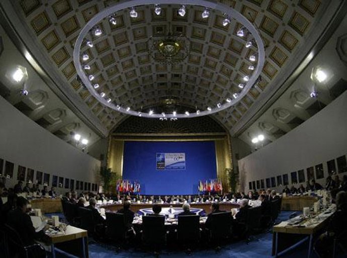 Los líderes aliados se reúnen en el Palacio de la Música y de Congresos de Estrasburgo en la segunda jornada de la Cumbre del 60 aniversario de la OTAN en el marco del Consejo del Atlántico Norte, máximo órgano de decisión de la Alianza (NAC).