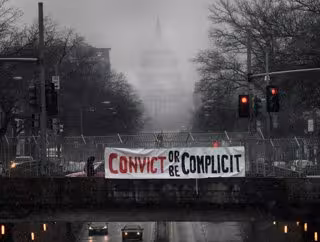 Una pancarta delante del Capitolio pidiendo Justicia tras el asalto del 6 de enero. - Carol Guzy/ZUMA Wire/dpa