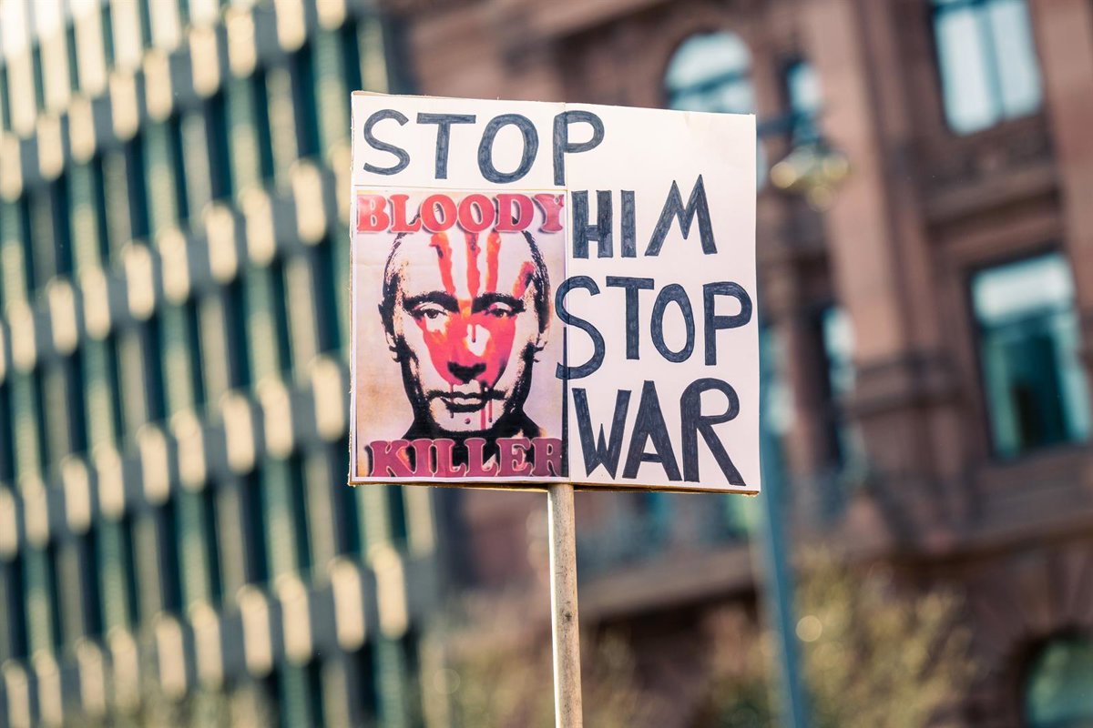 Archivo - Archvio - Cartel contra el presidente de Rusia, Vladimir Putin, por su invasión de Ucrania - Mohssen Assanimoghaddam/dpa - Archivo