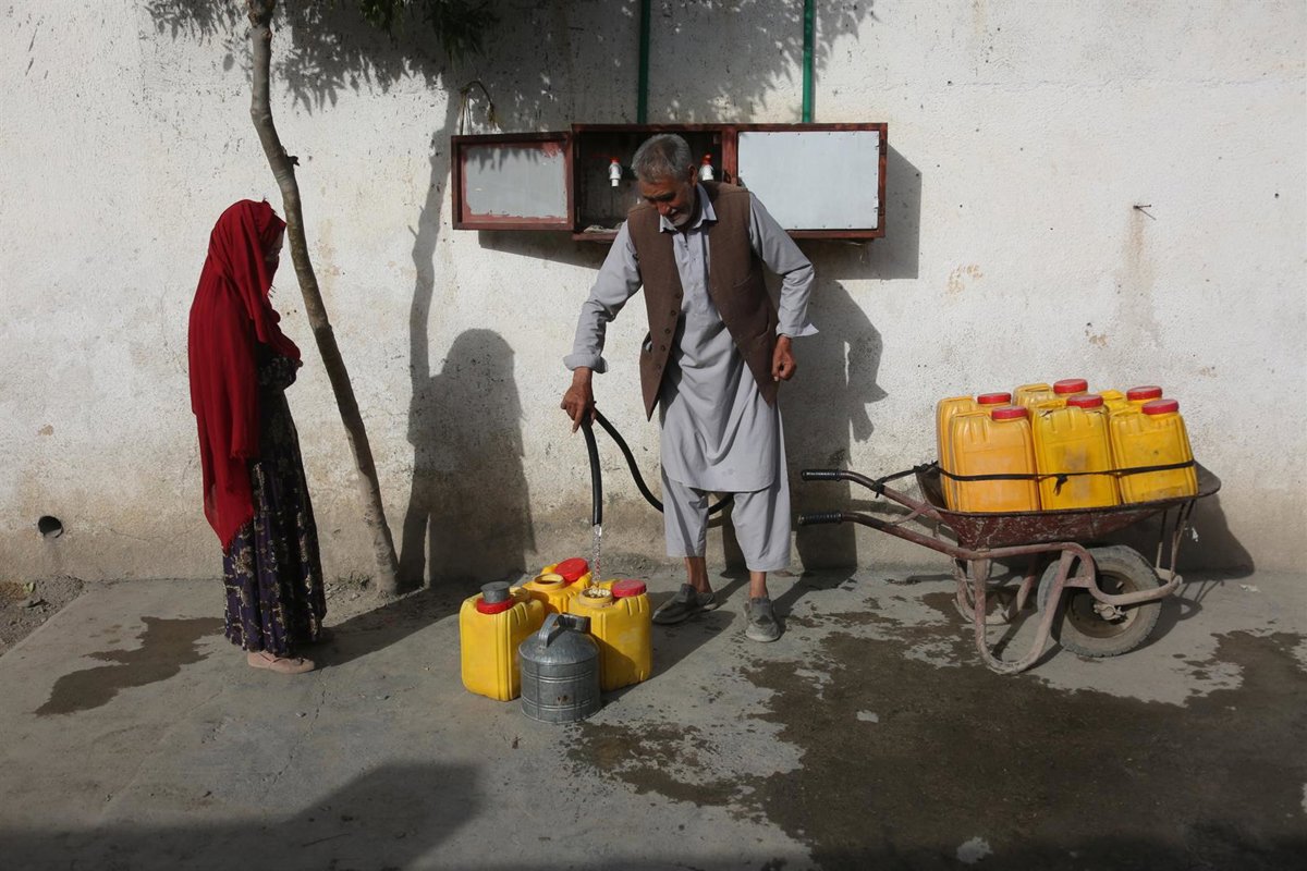 Archivo - Un hombre rellena una garrafa con agua en Kabul, Afganistán - Europa Press/Contacto/Saifurahman Safi - Archivo