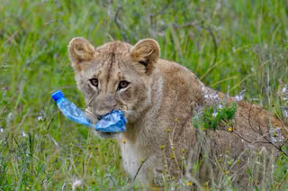 Leona con una botella desechable - FLIPFLOPI