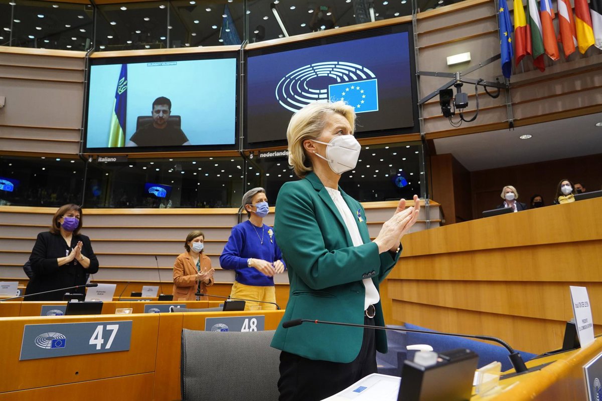 Ursula Von der Leyen aplaude el discurso de Volodimir Zelenski en la Eurocámara - Philippe Buissin/EU Parliament/d / DPA